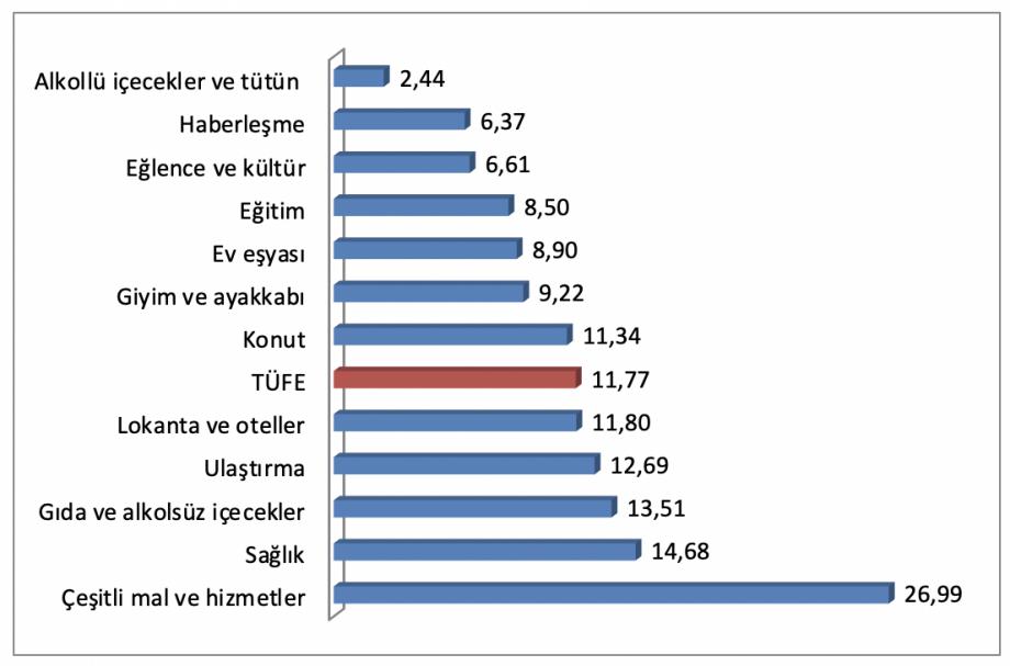 Tüketici fiyat endeksi (tüfe) yıllık %11,77, aylık %0,86 arttı. 2021 yılı ağustos ayında tüfe yüzde 1,12 oranında artmıştır. Türkiye i̇statistik kurumu (tüi̇k), ağustos ayı enflasyon rakamlarını açıkladı. Ankete göre, ekonomistlerin ağustos ayı enflasyon beklentilerinin ortalaması yüzde 0,72 oldu. Tüketici enflasyonu ağustos ayında beklentilerin üzerinde yüzde 19,25 seviyesinde açıklanırken, gerçekleşen enflasyona göre reel faiz negatif bölgeye .